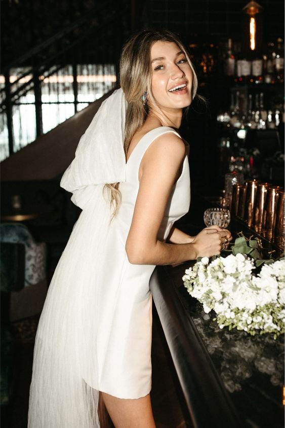 Simple, modern … and yet timeless. The relaxed fit, and “bare” style leaves the bride to be the showstopper. Add a touch of something special by jazzing it up with a veil or some strappy pumps. Think Ariana Grande, think Meghan Markle, think Amanda Stanton.